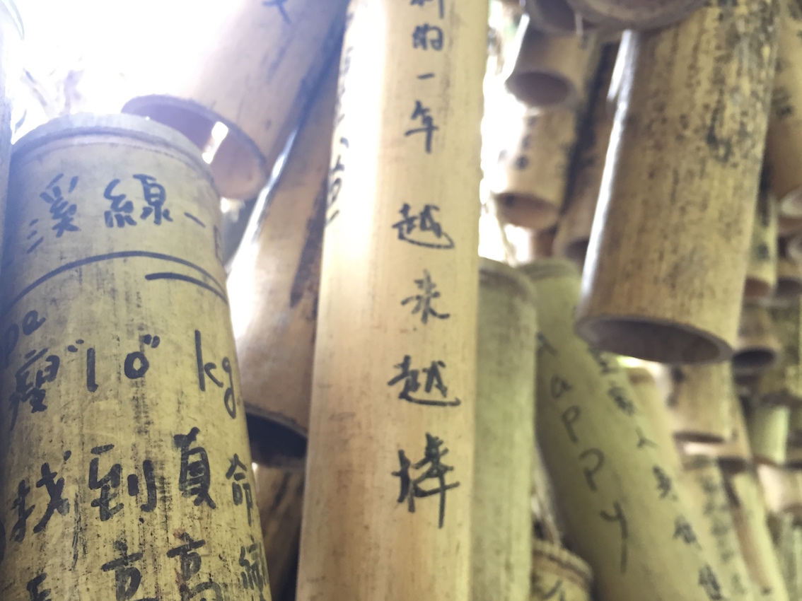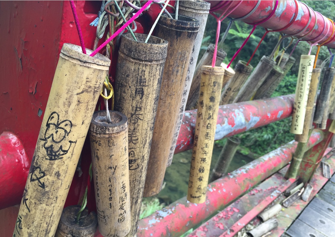 平溪的香腸有無數人排隊,光排隊就呆了一小時裡的大半。平溪天燈也是一大特色,不過我沒有嘗試。隨處可見祈願的竹筒。