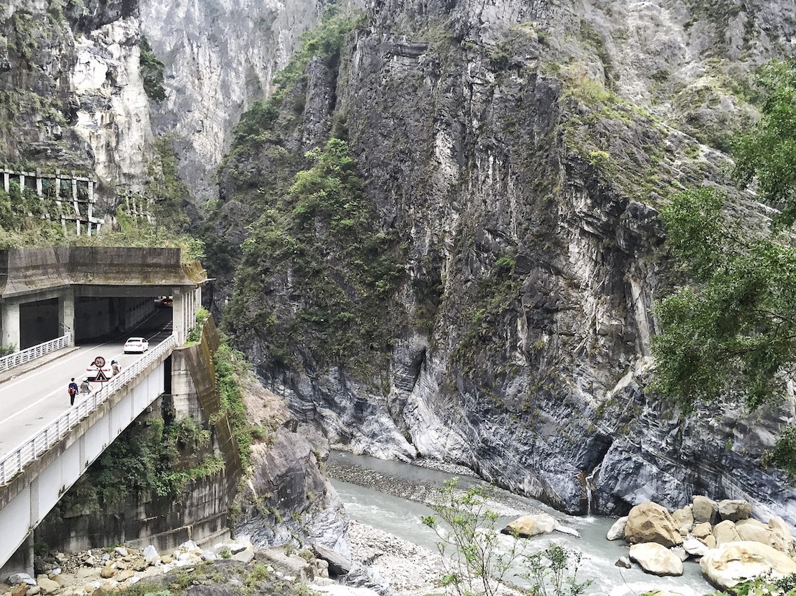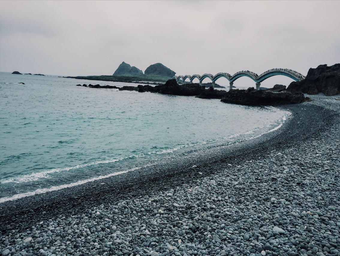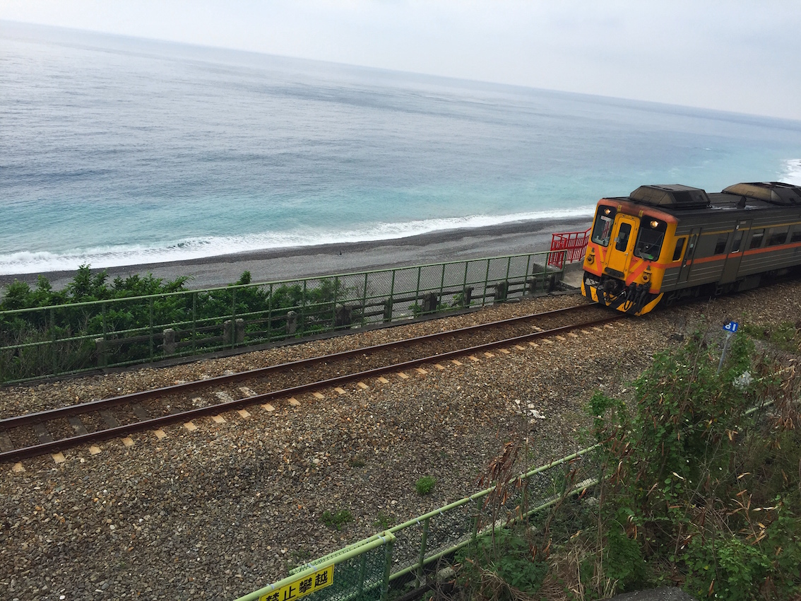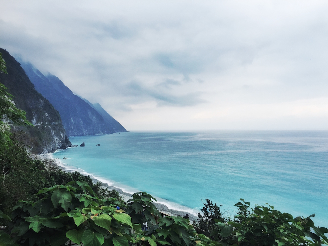 這一天為止,我看過海,通過步行、腳踏車、電動車、汽車、輪船、飛機,我看過了各樣的海。從高雄的黑沙灘,到墾丁的白沙灘,到花蓮沙灘變成礫石,景色變成左手峭壁斷崖,右手碧藍發亮的海水──清水斷崖即便在圖片里見過,它的美麗在現場仍會帶來震撼,帶來這次旅行最滿意的照片: