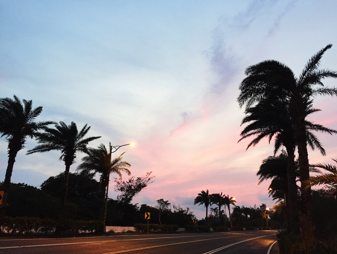 追趕日落開往關山,同伴電動車電瓶不夠爬山,急著回去便沒有遊玩關山。電動車如果要載人不建議爬關山,電量消耗很快,而且,不一定爬得上去……但在回墾丁大街路上還是看到了絕美的夕陽餘暉: